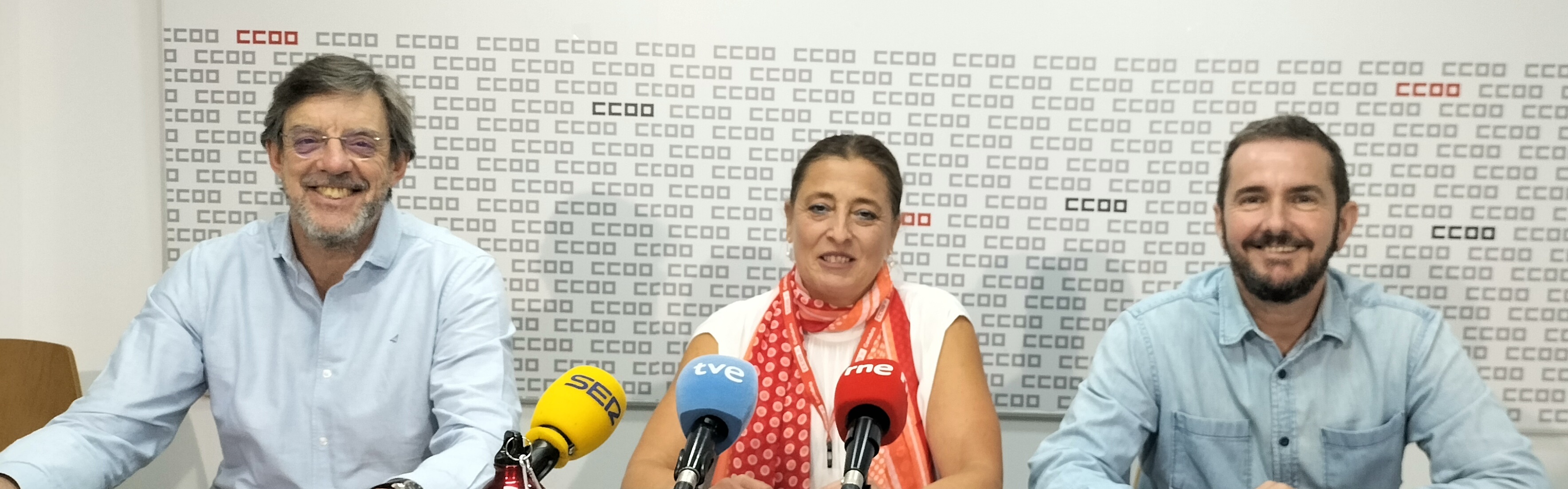 | De derecha a izquierda, Martín Calonge (UGT-Servicios Públicos), Arantxa Cossío (CCOO) y Manuel Garay (CSIF) |