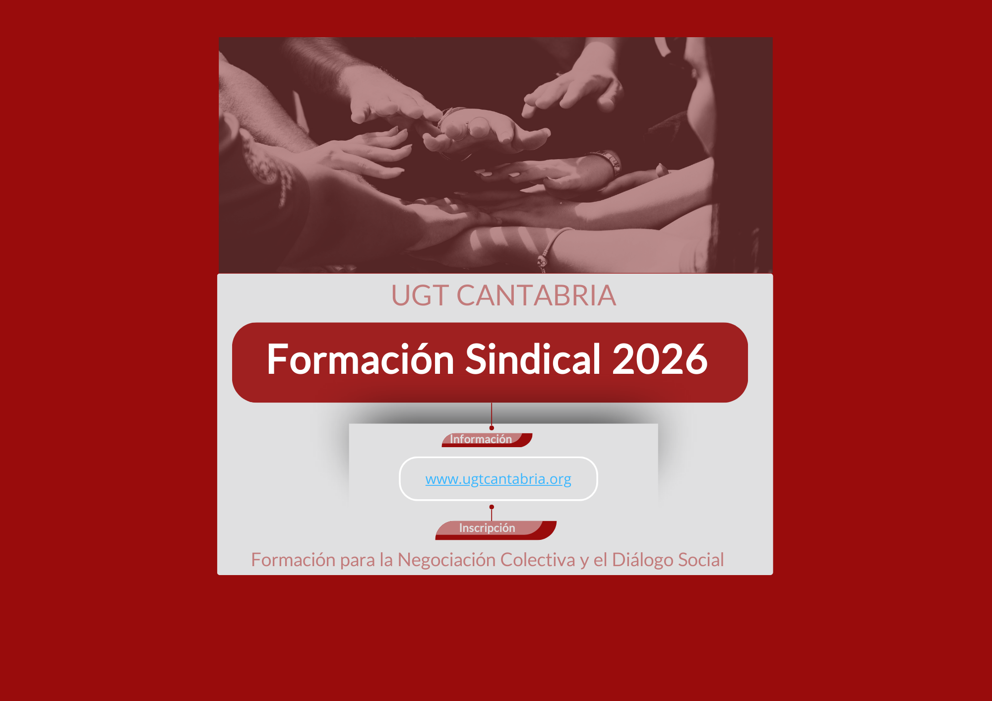 En una apuesta continua y práctica por la formación a todas a quienes representan a UGT en las empresas (Delegadas/os de personal, miembros del Comité de Empresa, Delegados/s sindicales, Delegadas/os de prevención, etc) a nivel sectorial o en otros ámbitos como el Diálogo Social, os presentamos el plan de Formación Sindical de UGT Cantabria para el año 2026.