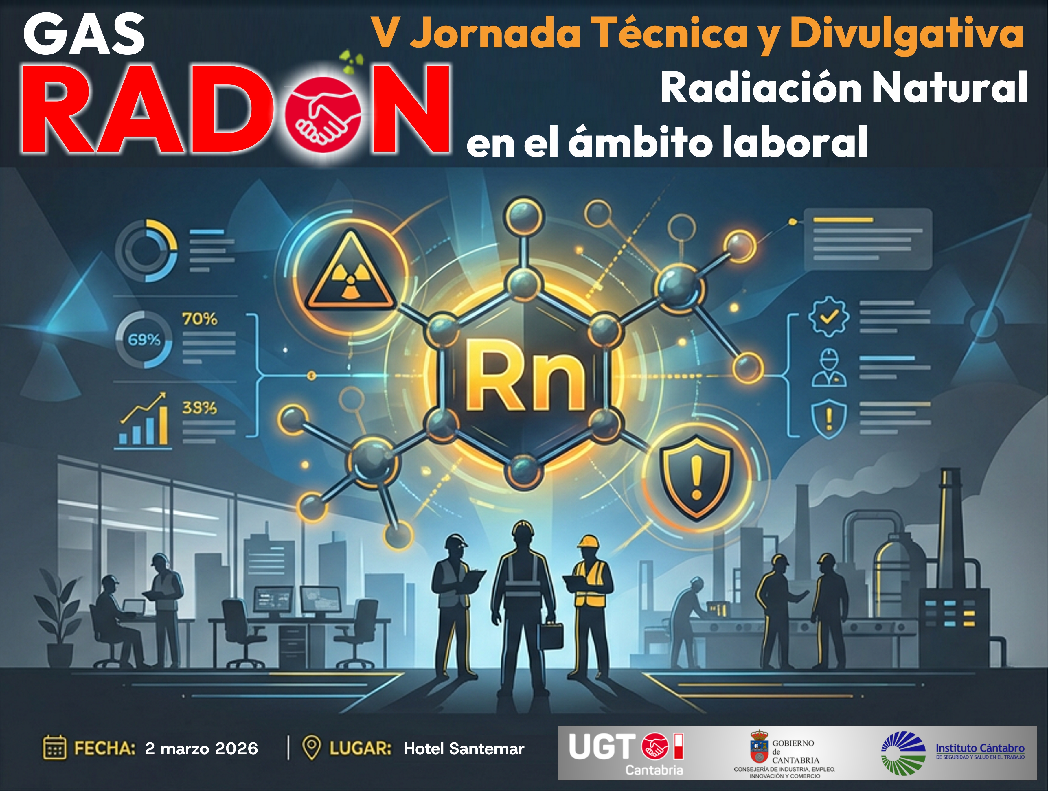 La jornada de UGT será inaugurada a las 9,15 horas por el secretario general del sindicato en Cantabria, Mariano Carmona; justo antes de iniciarse una conferencia de del catedrático de Ciencias Físicas de la Universidad de Cantabria (UC), Luis Santiago Quindós Poncela, sobre las características, las mediciones y el control del gas radón.