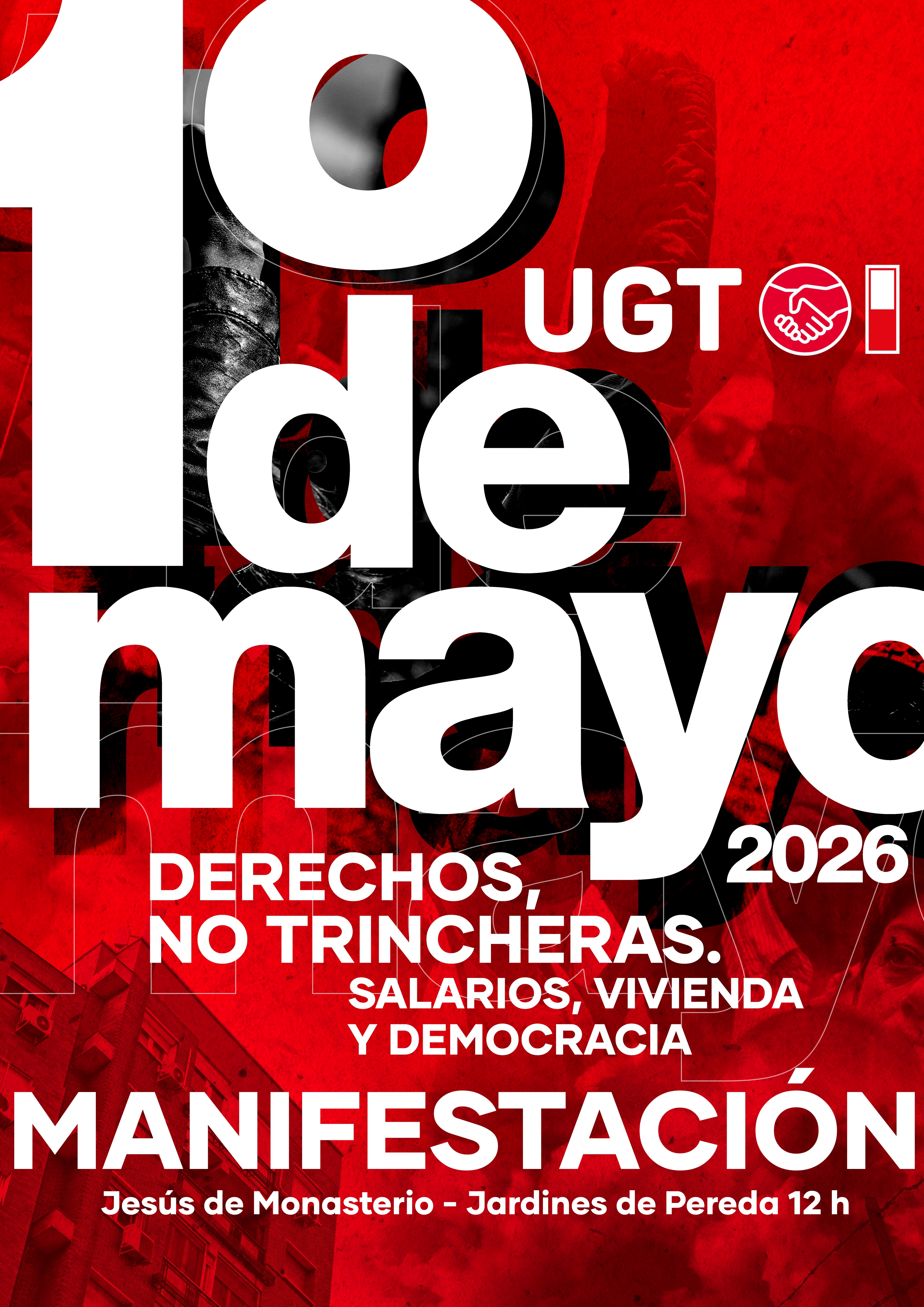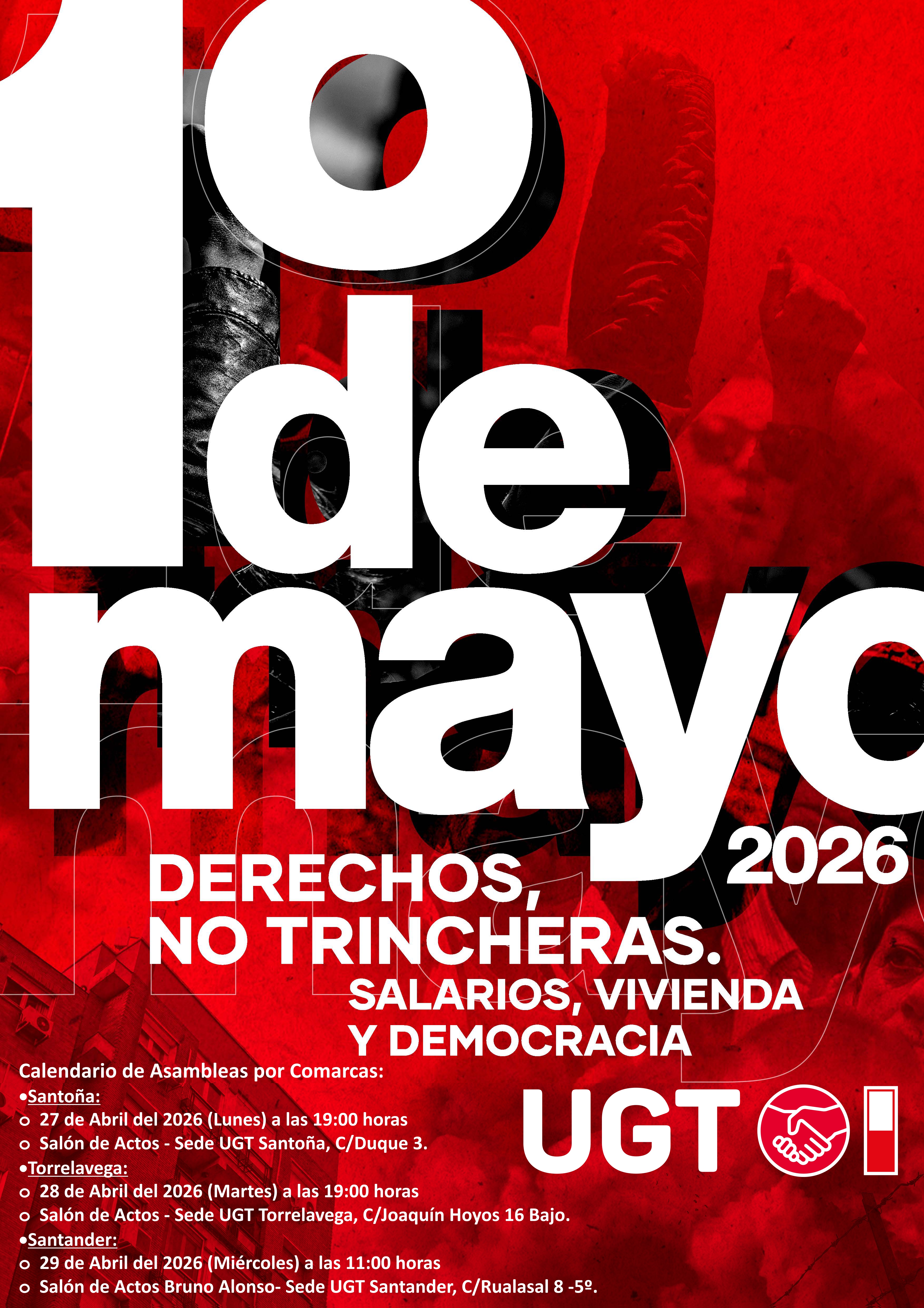 UGT y CCOO de Cantabria reivindicarán más derechos, más democracia y el respeto al Derecho Internacional en la celebración del Primero de Mayo, que este año se desarrollará por todo el país con el lema "Derechos, no trincheras. Salarios, vivienda y democracia".